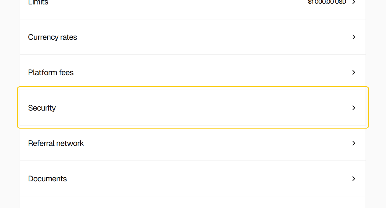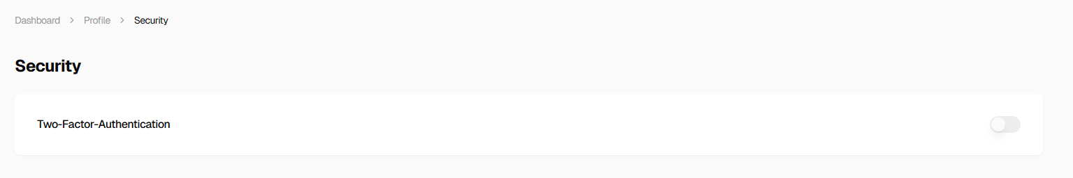 It is recommended to use two-factor authentication (2FA) and unique, strong passwords. 2FA can be enabled in the“Security”section of the profile using Google Authenticator.