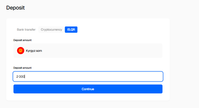 - Go to the "Deposit" section and select the "ELQR" method.